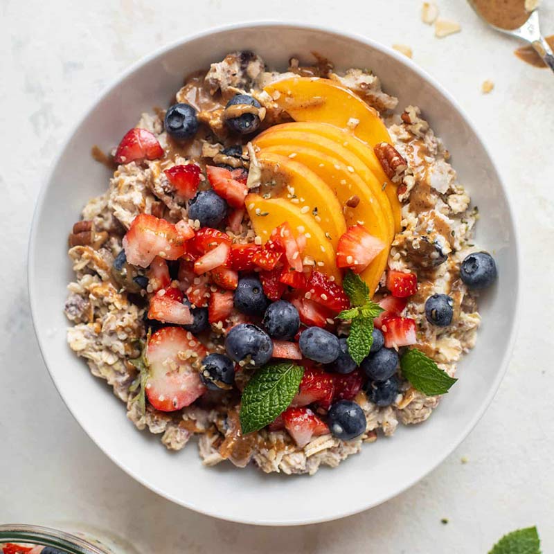 Rolled Oats soaked in apple juice, Sweet Yoghurt, Shredded Coconut and mixed Berries compost on top.