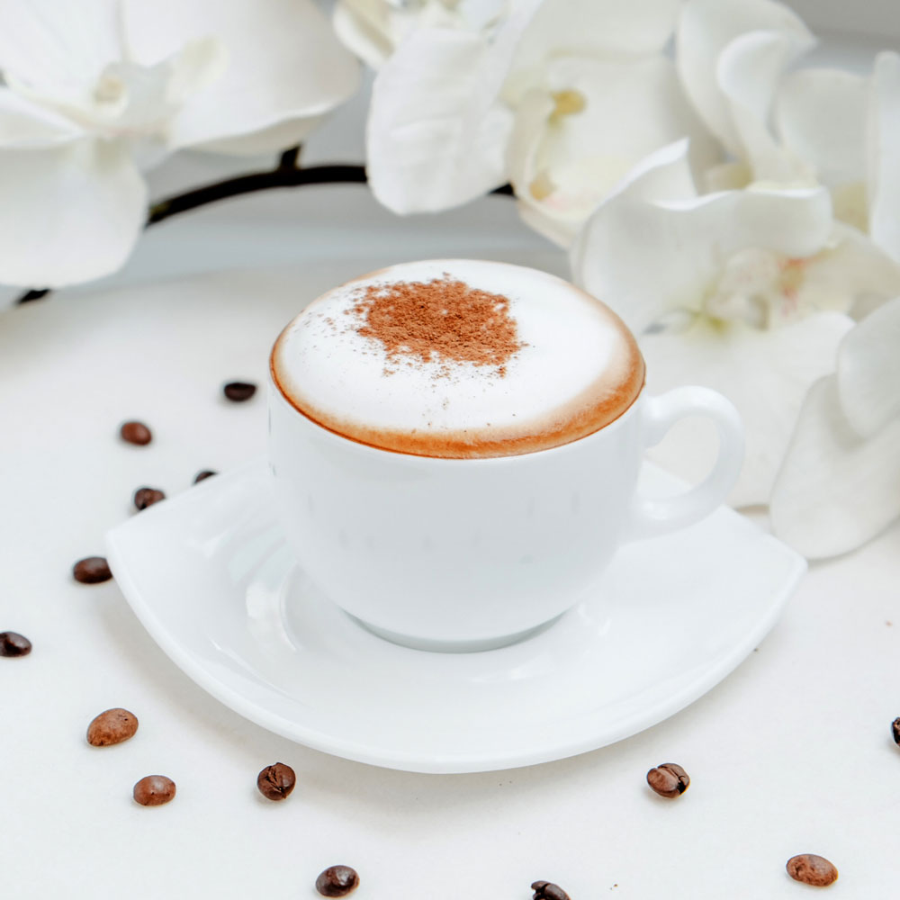 A frothy Cappuccino made with espresso and steamed milk. Choose your size.