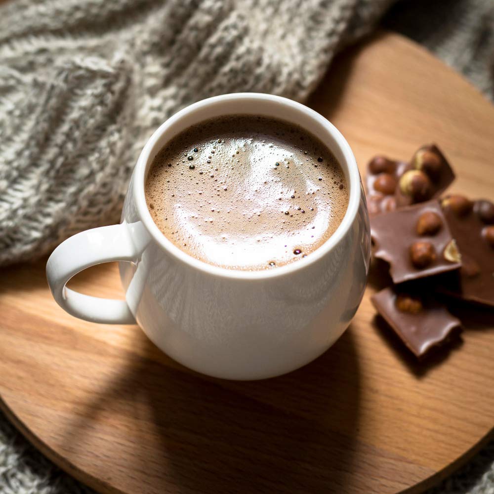 Made with premium cocoa and steamed milk.