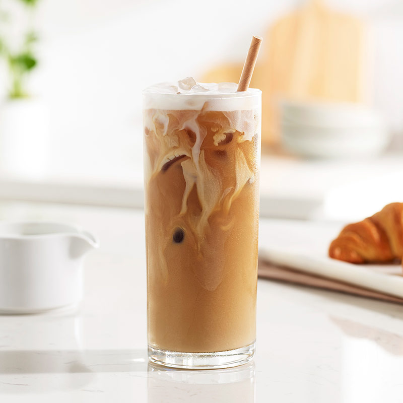A refreshing Iced Latte with espresso and milk.