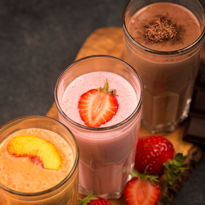 Made with milk, frozen yoghurt, honey and Flavors available: Strawberry, Banana, Mango, Tropical, Pistachio.