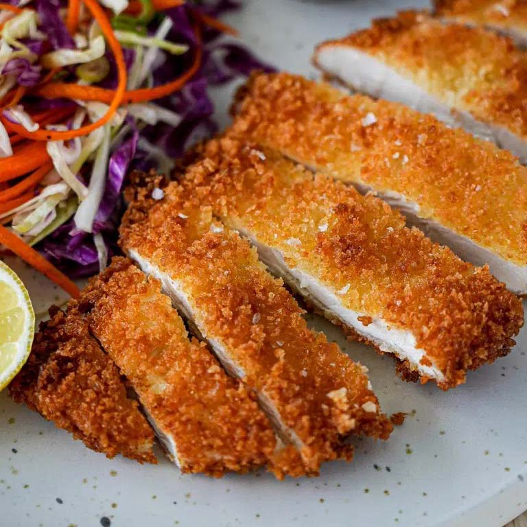 Crispy chicken schnitzel.